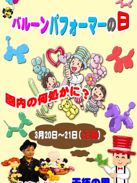 2021年3月15日 / 最終更新日時 : 2021年3月21日 干拓の里 イベント バルーンパフォーマーがやって来る!(3/20・3/21)※終了 ★バルーンパフォーマーSHUーN★ 出演日:令和3年3月20日(土・祝)・3月21日(日)の2日間 時 間:園内の何処かに出現!!! もしかしたら…風船がもらえるかも!?