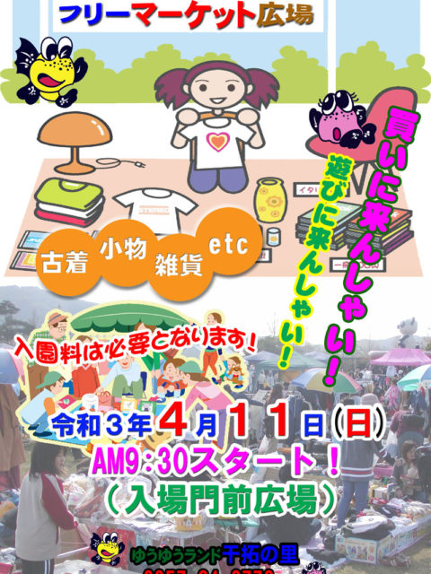 2021年4月4日 / 最終更新日時 : 2021年4月11日 干拓の里 イベント フリーマーケット広場(4/11)※終了 フリーマーケット開催 新型コロナウイルス感染拡大防止のため、今までのような大きなフリマではなく、当面の間、小規模ながら定期的に開催するスタイルといたしました。 開催日:令和3年4月11日(日) ※雨天中止 時 間:AM9 […]