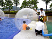 水の上なのに濡れずにいるのが何か不思議な気分。水の上を歩いたり寝転んだり、ちょっとした水上浮遊を楽しんでみませんか?アクアボールは1人乗りですが、アクアチューブは2人でも乗れますよ。親子、お友達同士でお楽しみいただけます。
