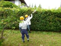 諫早ゆうゆうランド干拓の里におきまして、諫早市シルバー人材センターによる奉仕活動が行われました。4月23日(月)は機械刈班35名、5月21日(月)は剪定班、緑化班、家事援助班の総勢132名(参加会員167名)による、清掃活動が行われました。