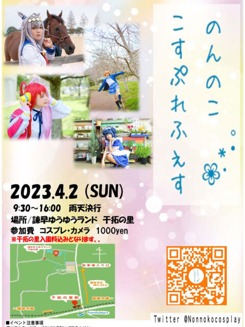2023年4月1日 / 最終更新日時 : 2023年10月31日 干拓の里 イベント のんのこ こすぷれふぇす開催(4/2)※終了 ♥のんのこ こすぷれふぇす開催♥ 当日は、約30名のコスプレ参加者で干拓の里を夢の国へ!!! 日にち:令和5年4月2日(日) ※雨天決行 時 間:9:30~16:00(干拓の里の営業は17:0 […]