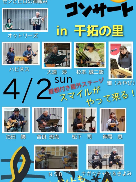 2023年4月1日 / 最終更新日時 : 2023年10月31日 干拓の里 イベント 第10回スマイルコンサート(4/2)※終了 春の日差しの中で、音楽を!! 地元演者によるライブステージ!! 第10回スマイルコンサート開催 開催日:令和5年4月2日(日) 時 間:10:00~ タイムスケジュール 10:00・・・開会 10:30・・・松下 司 1 […]