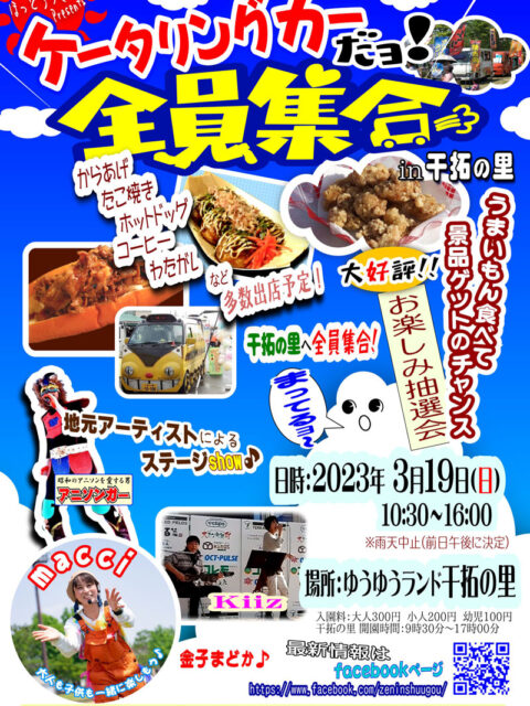 2023年3月18日 / 最終更新日時 : 2023年3月19日 干拓の里 イベント 春のケータリングカーだよ!全員集合!【終了】 今年も「2023春のケータリングカーだよ!全員集合!」が干拓の里で開催されます!「唐揚げ・たこ焼き・ホットドッグ・肉まん・コーヒー・わたがし」等多数のケータリングカーが大集結!食べるのはもちろんですが、クイズやゲーム大会 […]