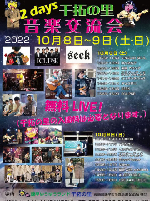 2022年9月29日 / 最終更新日時 : 2022年10月9日 干拓の里 イベント 干拓の里 音楽交流会(10/8・10/9) ※終了 ♪秋の青空の下で音楽を楽しみましょう♪ ♫干拓の里「音楽交流会」開催♬ 開 催:令和4年10月8日(土)・10月9日(日) 時 間:8日(11:20~16:20)・9日(10:15~16:00) 観 覧:観覧無料(※入園 […]