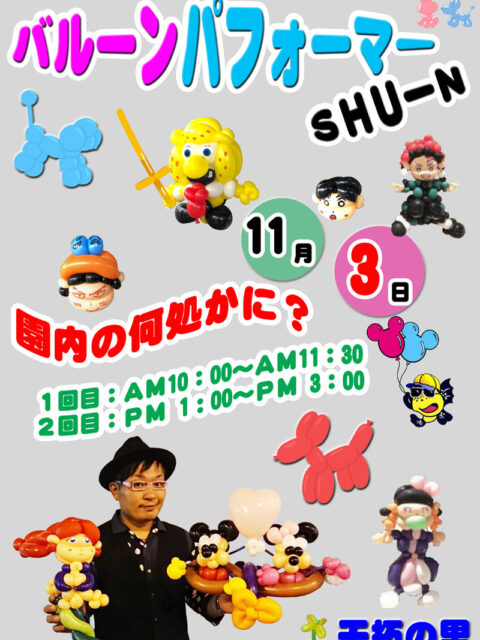 2022年10月10日 / 最終更新日時 : 2022年11月9日 干拓の里 イベント お楽しみの日 バルーンパフォーマー(11/3)※終了 子どもさんとの「ふれあい」を大切に! 干拓の里からのプレゼント! 一日楽しく過ごしてください! 出演日:11月3日(木・祝) AM10:00~AM11:30(園内の何処かに?) PM 1:00~PM 3:00(園内の何処 […]