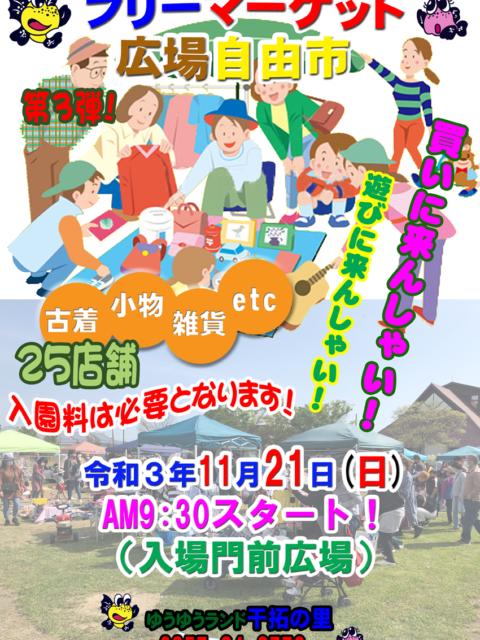 2021年11月15日 / 最終更新日時 : 2021年11月24日 干拓の里 イベント 第3弾フリーマーケット広場自由市開催(11/21)※終了 第3弾!!フリーマーケット広場自由市!! 新型コロナウイルス感染拡大防止のため、今までのような大きなフリマではなく、当面の間、小規模ながら定期的に開催するスタイルといたしました。 開催日:令和3年11月21日(日) ※雨 […]