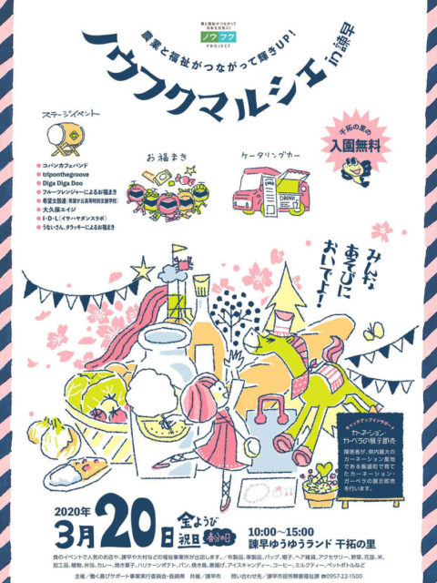 2020年3月11日 / 最終更新日時 : 2020年3月21日 干拓の里 イベント ノウフクマルシェ in 諫早(3/20)※中止 「ノウフクマルシェin諫早」の開催中止について 2月25日の政府発表の”新型ウイルス対策基本方針”を考慮し、イベント等における開催の必要性を検討した結果、3月20日に開催を予定しておりました「ノウフクマルシェin諫早」に […]