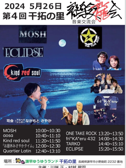 2024年5月5日 / 最終更新日時 : 2024年7月24日 干拓の里 イベント よかもんLive!(5/18)※終了 お買い物や軽食を楽しみながら、Liveを見に来んね〜 😉 令和6年5月18日(土) 12時00分スタート! よかもん市のお庭でLive! ※ よかもん市よりご入場ください。 12:00~ Club mic […]